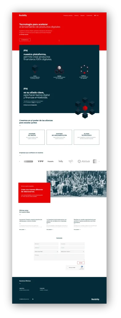 Diseñamos y desarrollamos un sitio web moderno, funcional y visualmente impactante que reposiciona a Flexibility como un referente en soluciones tecnológicas para el sector financiero, destacando al mismo tiempo su propuesta de valor, el talento humano que impulsa la compañía y sus casos de éxito más relevantes.
