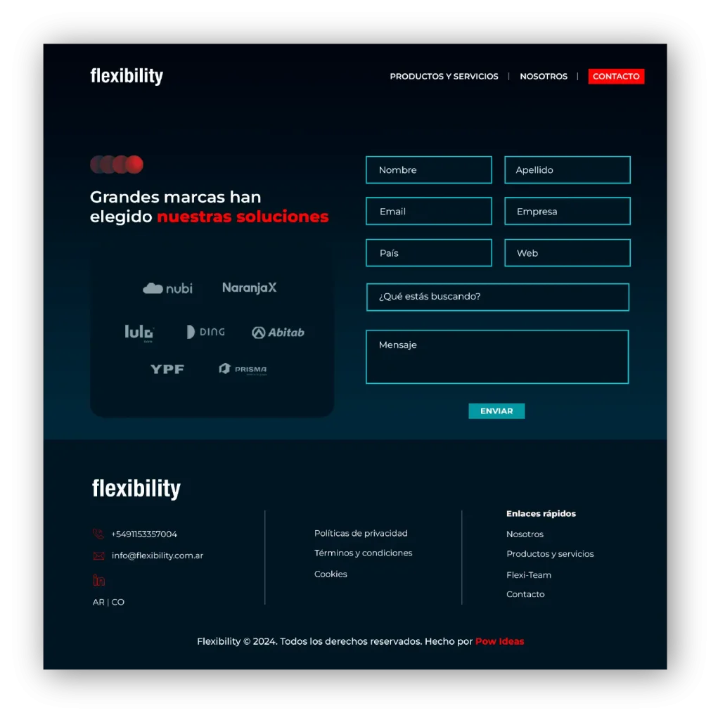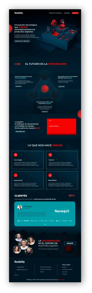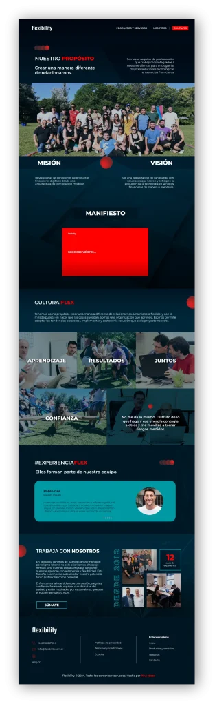 Flexibility es una empresa de tecnología con ADN argentino y proyección en Latam que impulsa la transformación del ecosistema financiero a través de soluciones digitales ágiles y adaptables. Con una visión centrada en las personas y una fuerte apuesta por el talento, Flexibility necesitaba una nueva web que reflejara no solo su evolución, sino también su propuesta de valor única: combinar tecnología de vanguardia con una mirada humana.